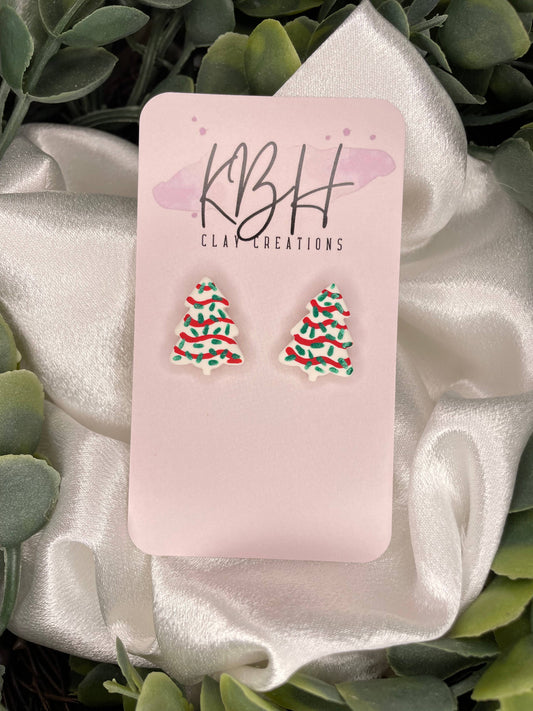 Matte Christmas Tree Stud Clay Earrings